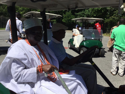 The visiting Ooni of Ife and his wife, Olori Wuraola, attended a golf tournament at the Marlton Golf Club, Upper Marlboro in the US today. More photos after the cut….