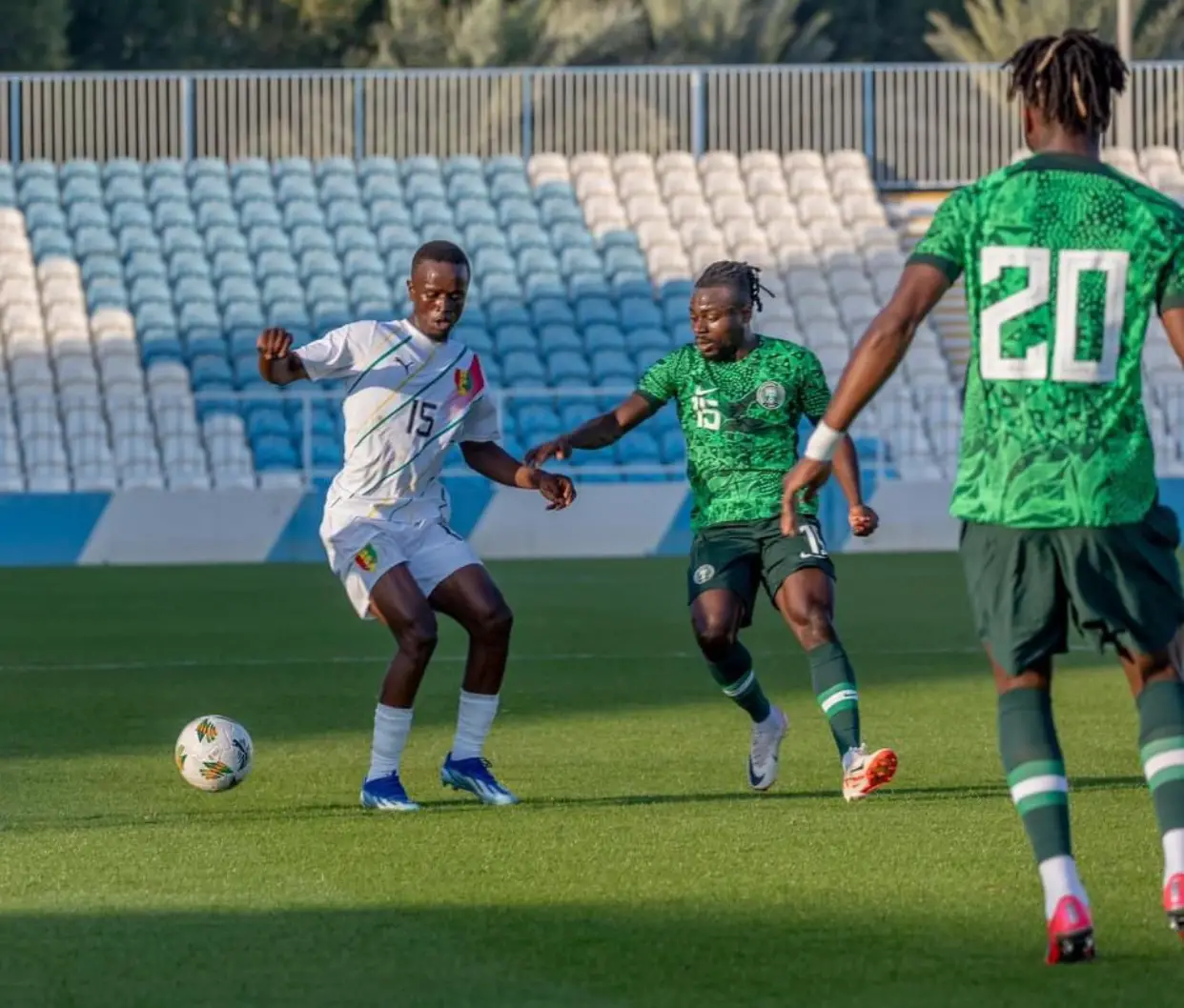 Nigeria’s Super Eagles suffered a 2-0 loss to Syli National of Guinea in a friendly game played in Abu Dhabi on Monday, Completesports.com reports.