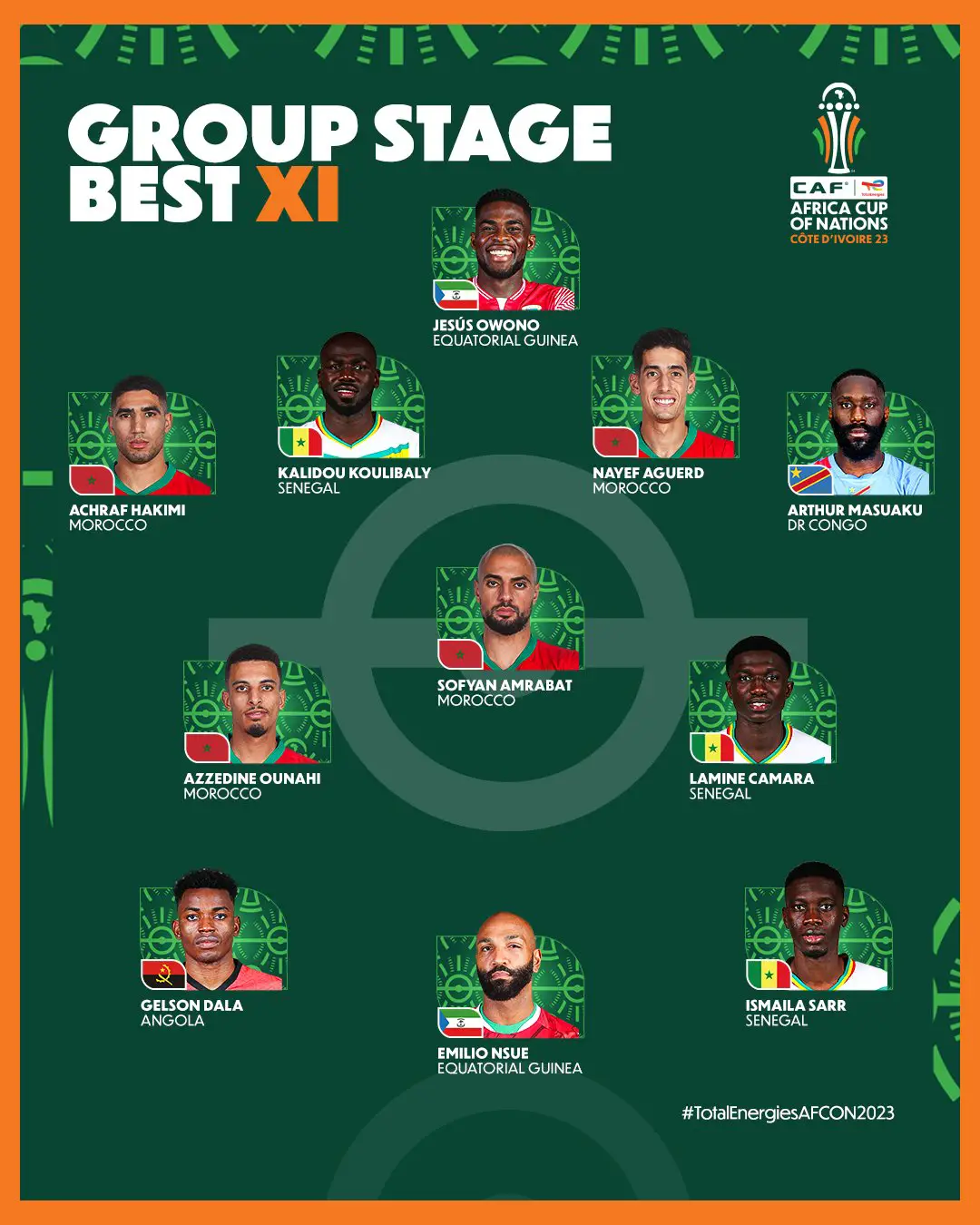 The Confederation of African Football (CAF) has named its Best X1 for the group stage of the 2023 Africa Cup of Nations with no Super Eagles included.