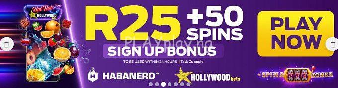As mentioned before all that you need to do to receive the R25 bonus and 50 free spins is to Sign Up on the Hollywoodbets site.