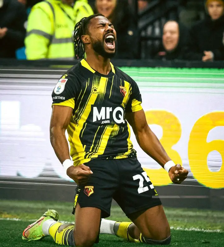 Emmanuel Dennis was on target for Watford in their 2-2 draw at home against Leeds United in the Championship on Friday.