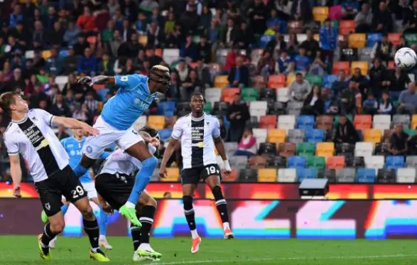Victor Osimhen was on target for but a late Isaac Success goal saw relegation threatened Udinese force Napoli to a 1-1 home draw in Monday’s Serie A game.
