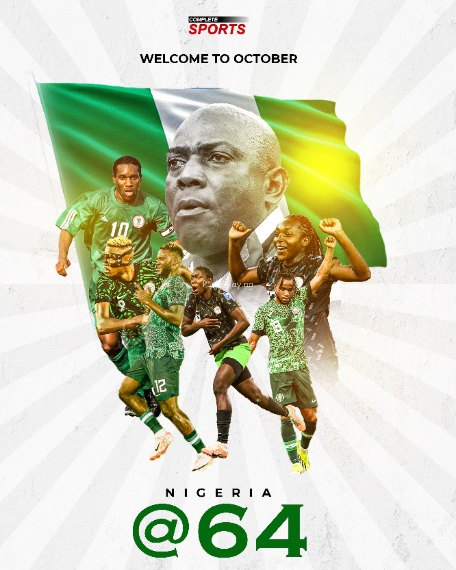 Today, as Nigeria marks this significant milestone on October 1, 2024, all of us at Complete Communications Limited (CCL), the publishers of Completesports.com and e-Complete Sports , extend warm wishes to you. As we join millions across the nation in commemorating 64 years of Nigeria’s journey as a nation, we fervently pray for positive transformations Get Online with a Domain & Free Website !