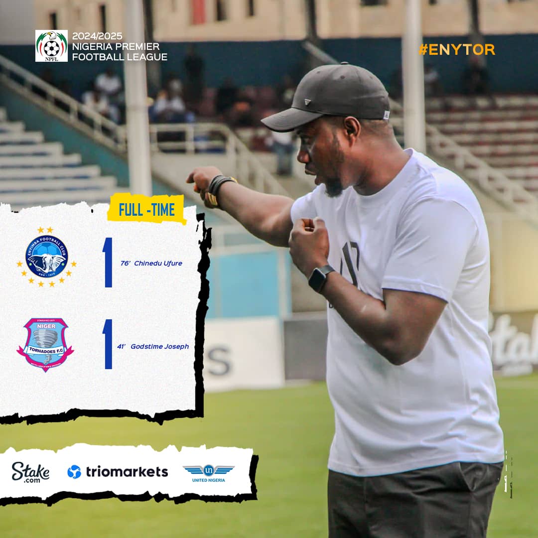 The post NPFL: Olanrewaju Rues Missed Chances In Enyimba’s Draw Against Tornadoes appeared first on pLAYPLAY.NG.