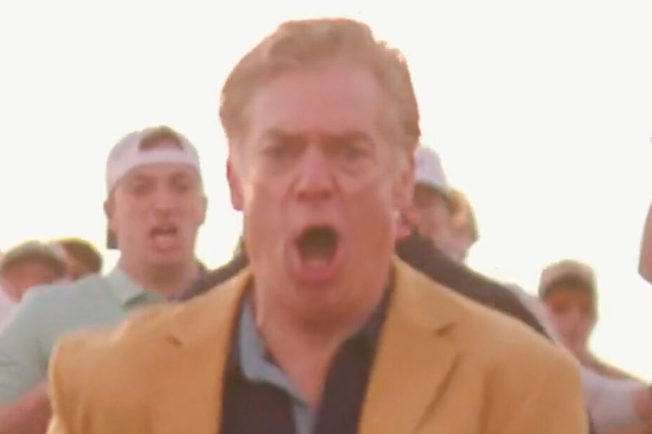 Actor Christopher McDonald, who not only played in Wednesday’s Pro-Am at TPC Scottsdale but also depicted Shooter McGavin in Happy Gilmore, decided to have some fun with fans on Saturday morning. While sprinting away from the incoming crowd, Gilmore tried to put on a Gold Jacket, evoking one of the closing scenes from the 1996 classic. In the original film, Happy Gilmore holed a ridiculous shot at the end and won the tournament, and thus the Gold Jacket, but McGavin was so incensed by Gilmore that he stole his prize and ran away with it.
