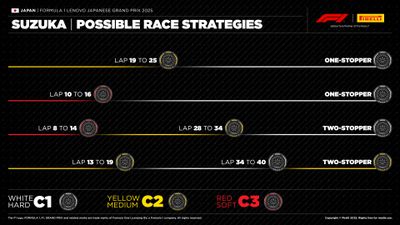 Pirelli outlined these strategies as potential options for Sunday’s Japanese Grand Prix: