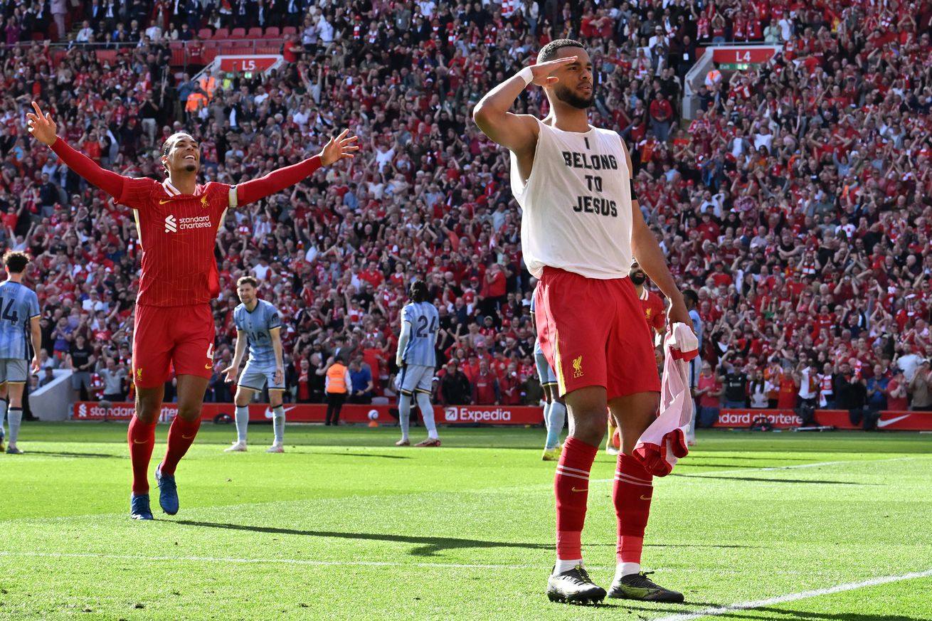 After scoring Liverpool FC’s third goal against Tottenham Hotspurs on Sunday at Anfield, Cody Gakpo took off his jersey to reveal a tank top bearing “I BELONG TO JESUS”. The message and the font was identifical to what Brazilian and AC Milan superstar Kaka would do, and did when he scored in the UEFA Champions League Final of 2007 against Liverpool. He was also seen wearing the top in the jubilant post-match celebrations as Liverpool celebrated their 20th top-flight title.